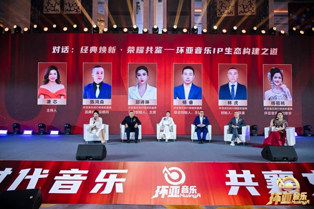 · 对话环节:环亚音乐品牌战略总顾问陈鸿森、联合创始人邱诗林、杨睿、创始人林虎及签约歌手杨祖桃围坐一堂,以经典焕新·荣耀共鉴为主题,展开了一场关于音乐IP生态构建的深度对话。这场汇聚产业领袖与新生代音乐人的思想碰撞,为现场观众呈现了环亚音乐在IP生态建设上的战略布局与创新思考。