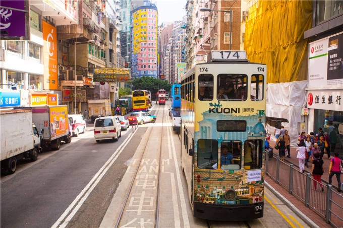 搭乘叮叮车不仅可以代步,也是在香港不容错过的体验。叮叮车行驶速度慢,沿线经过的区域既有古老的街市,又有繁华的商业街,“叮叮叮”的声响恍如隔世,是个细品香港百态的好机会。