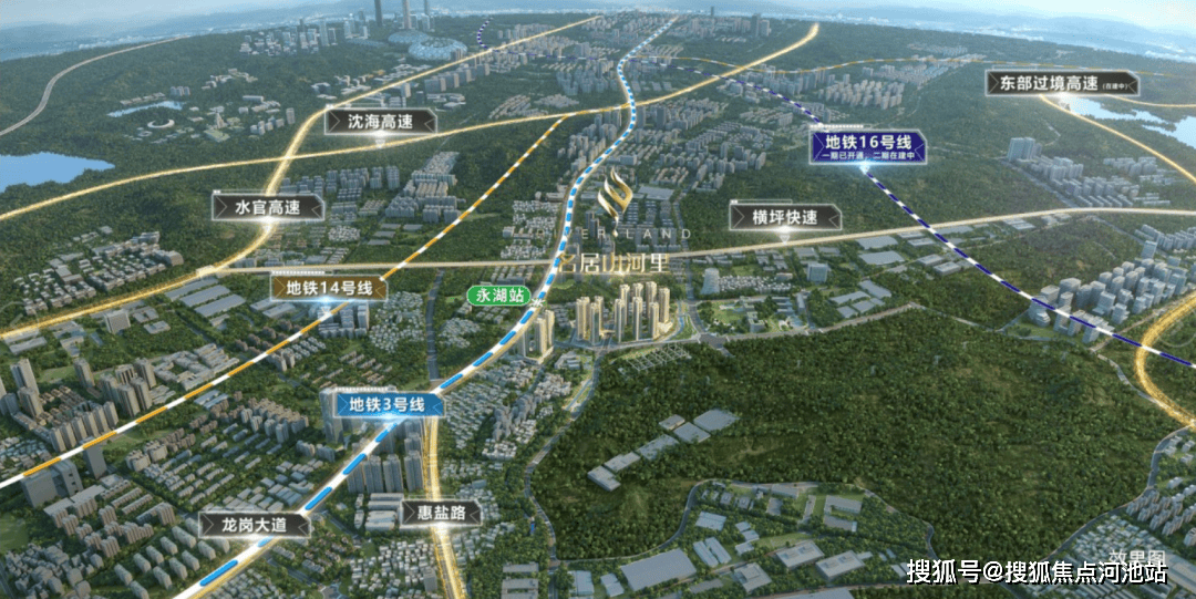 名居山河里,位于龙岗区园山街道3号地铁线米,地处龙岗黄金三角地带,北邻大运新城,东侧是阿波罗未来产业城,西南侧是横岗中心片区。