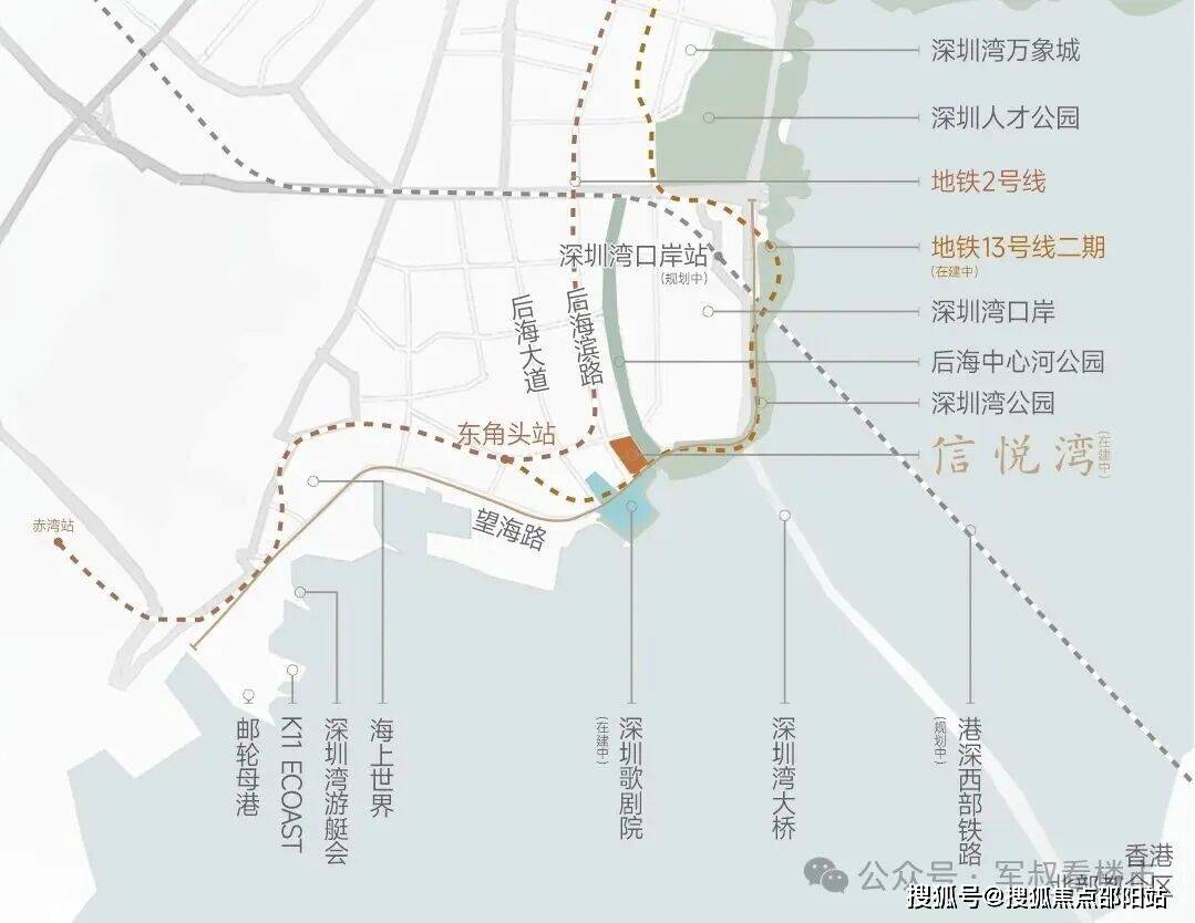 在交通配套方面,项目临近在建的13号线号线东角头站,这条是含金量很高的贯穿南北的黄金快线,串联深圳湾、南山、科技园、西丽等高新产业区。