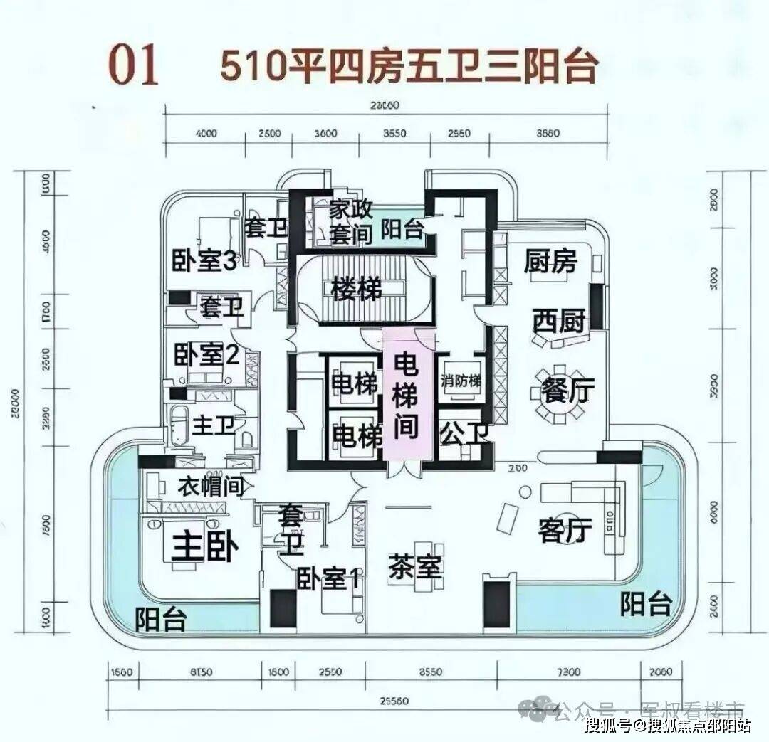 1A栋:约512㎡户型5+1房3厅5卫,1栋,东南向,每层一户,43层,165.77米,3梯1户,南北通大平层,在地块中间,南侧会有酒店遮挡。总价预计7570-10250万!
