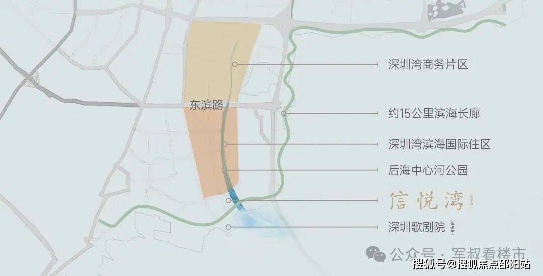 该项目地理位置十分优越。项目位于南山后海大道与望海路交界东北角,其东边是新校海岸学校,北边是奥城花园、翡翠海岸等豪宅,南边是深圳地标——深圳歌剧院(在建中),西边是深圳湾口岸,占据着深圳湾绝对中心位置。