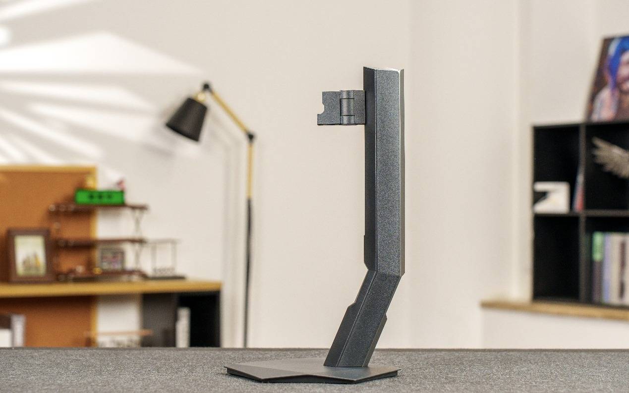 而安装方式则是目前显示器主流的免工具安装。用户只需要用快拆螺丝固定支架立柱和底座,再将支架整体卡入显示器背后的接口即可,整个过程非常方便。