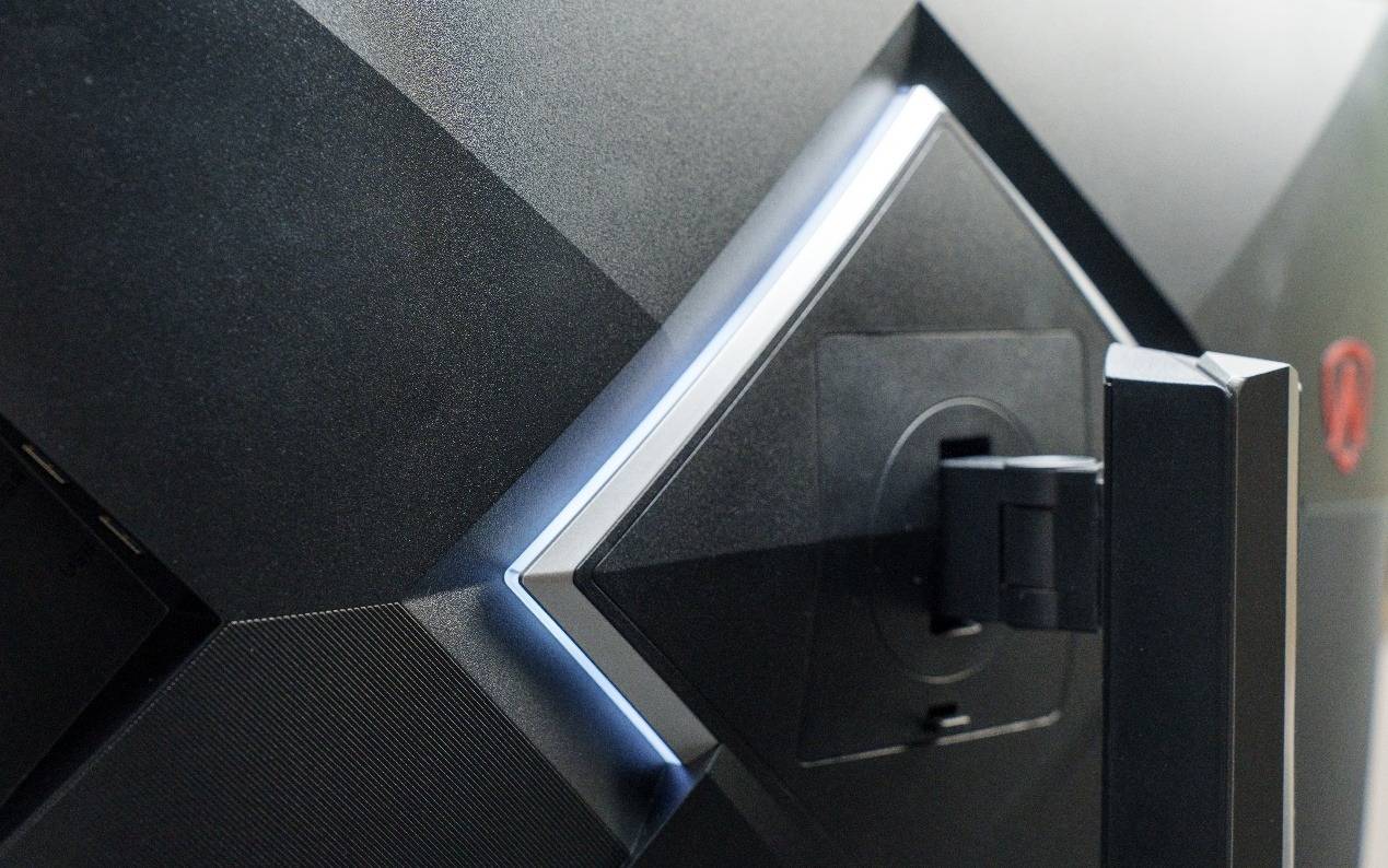 当然,整台AGON AG277UX的外观设计中最吸睛的部分莫过于背部集成的LightFX音乐律动炫彩氛围灯。这套系统可以提供大量灯光效果,并可以通过OSD菜单或者G-Menu软件进行详细设置。实际使用时,灯光能实时跟随游戏或音乐的节奏变化,大大增强了使用时的氛围感。