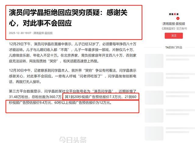 可闫学晶只是简单说了句“感谢关心,对此事不会回应”,就匆匆挂断了电话,之后再拨打便无人接听。