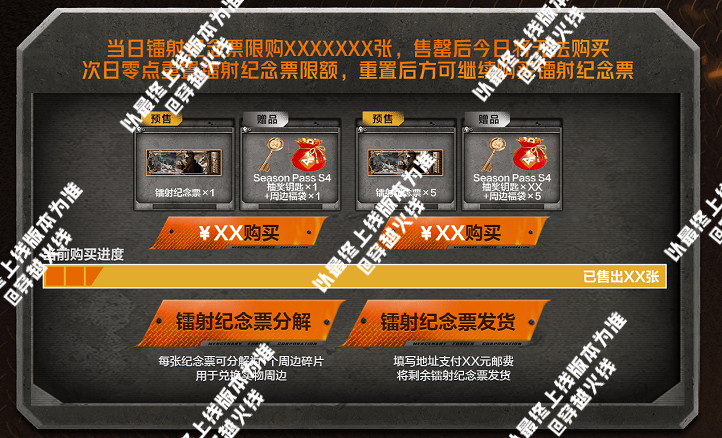 CFer购买镭射纪念票也可获得对应数量的Season Pass S4活动抽奖钥匙+周边福袋,镭射纪念票可选择分解为周边碎片来兑换实物周边或选择支付邮费发货。(填写地址支付邮费并点击“镭射纪念票发货”后,会将目前账号剩余镭射纪念票一同发出)