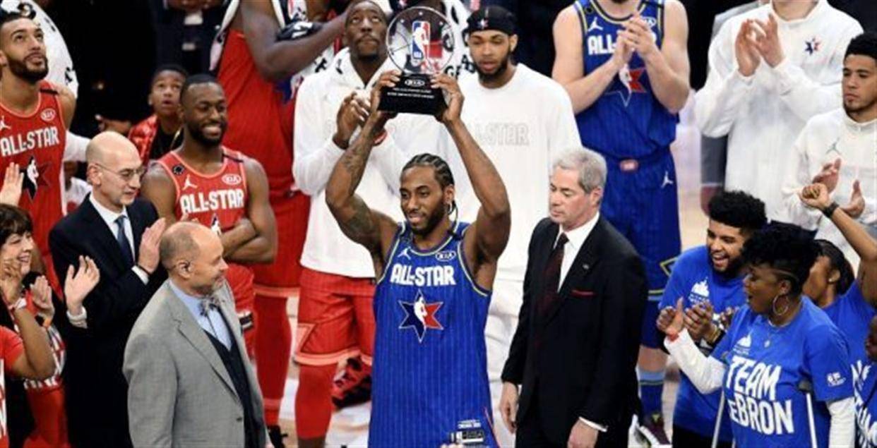比赛结束的哨声响起,勒布朗队拿下了胜利,伦纳德捧起了MVP奖杯。 这场全明星赛打得不像往常那样轻松娱乐,球员们真刀真枪地干,仿佛季后赛抢七一样拼。 观众都看傻眼了,谁也没想到全明星能这么激烈。