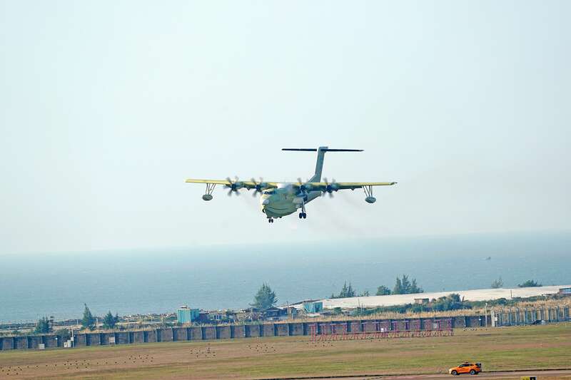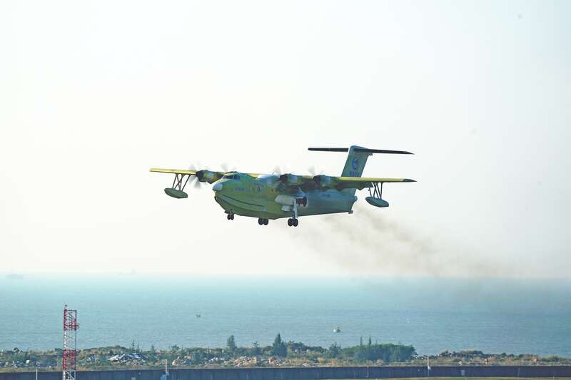 8时10分,由机长赵生、副驾驶田亚飞、空中机械师虞磊和机上观察员焦连跃组成的首飞机组,驾驶着AG600M飞机从珠海金湾机场滑行起飞,在空中平稳飞行13分钟,完成一系列既定试飞科目后,于8时23分平稳降落,飞机状态良好,操纵系统正常,各系统运行稳定。